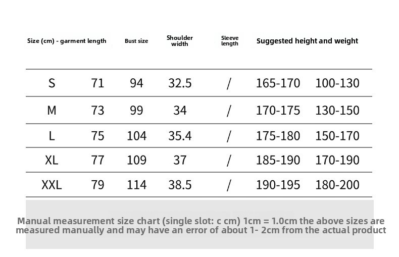 Sizes: S, M, L, XL, XXL